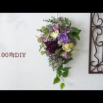 ダイソーさんの花材で作るフラワーインテリアです。板にグルー接着していく簡単な方法なので、初めての方でも挑戦できるアレンジメントになっています。壁掛けにしたり立て掛けたり、イーゼルを使ったりと飾り方は自由です。今回はパープルをメインカラーにしていますが、お好みのカラーやお花で楽しんで頂けると嬉しく思います。作成方法など皆様のハンドメイドの何かしらお役に立てれば幸いです。 リーズナブルな価格で、初めての方でも簡単お手軽に楽しめるお花をご提案しています。 ワイヤリングやテーピングといった難しい工程はできる限り省き、”切って挿す””グールーで貼る”といったシンプルな作業を基本にしています。 ****************************************************** 【花材】※花材は全てダイソーさんの購入商品です。 ・ユーカリベリースプレー・300円商品 (グリーンスプレーNo1586) ・プチフルール(ダリア)×2 (ショートフラワーNo3669) ・プチフルール(ラナンキュラス) (ショートフラワーNo3652) ・スノーボール(フラワースプレーNo12) ・マイクロローズスプレー(ニュアンス) 一本花(ローズ)No6716・200円商品 ・つぼみブッシュ(一本花No529) ・グラスブーケ(200円フラワーブーケNo9) ・木製ジョイントラック・株式会社ドウシシャ製 (棚板・ブラウン30㎝×15㎝) ★その他 ※接着にグルーガンを使用しています…